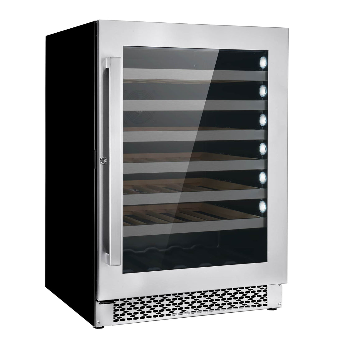 - 6 Beechwood shelves with telescopic rails for convenient access to bottles
