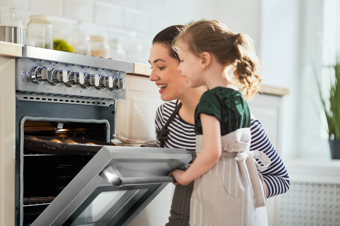 - Oven cavity cooling ventilation system for safe heat dissipation, overheating protection, triple-thick oven glass and a cool-to-touch oven handle to prevent burns