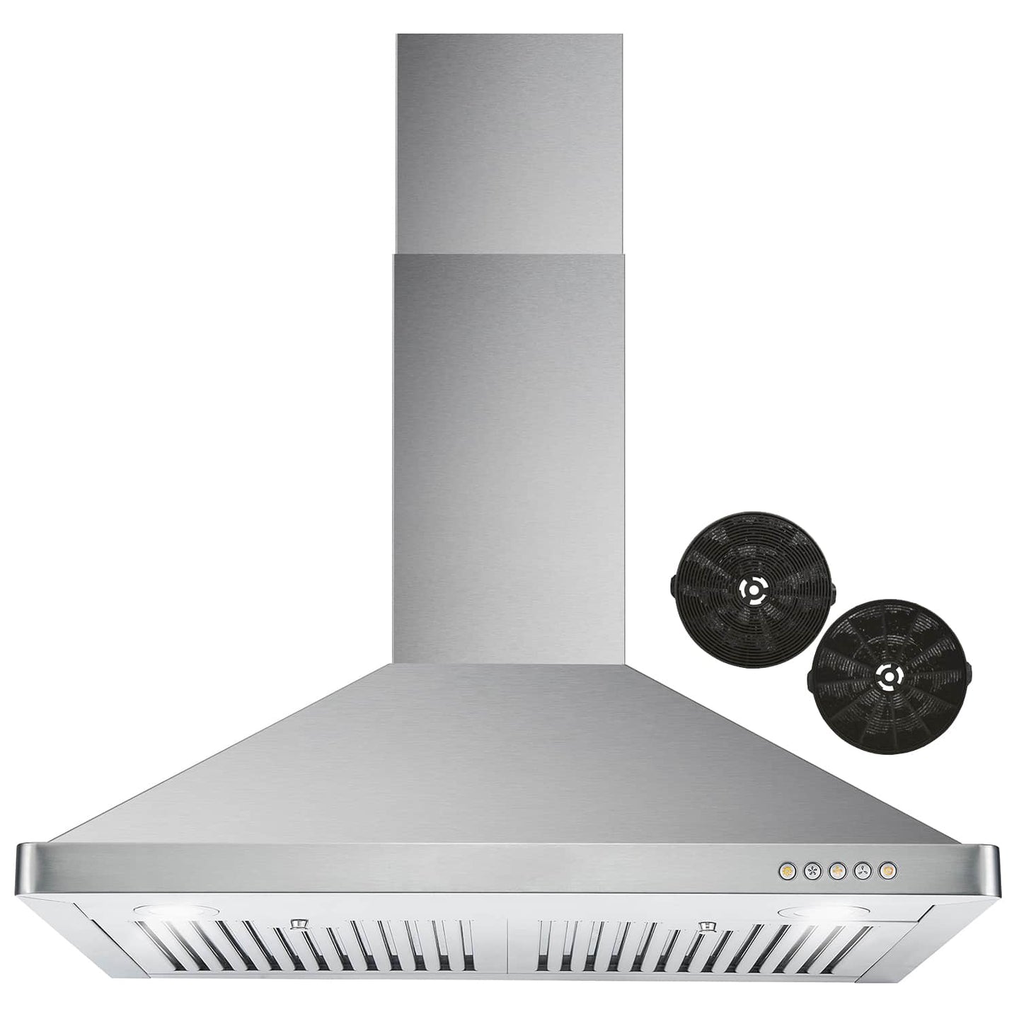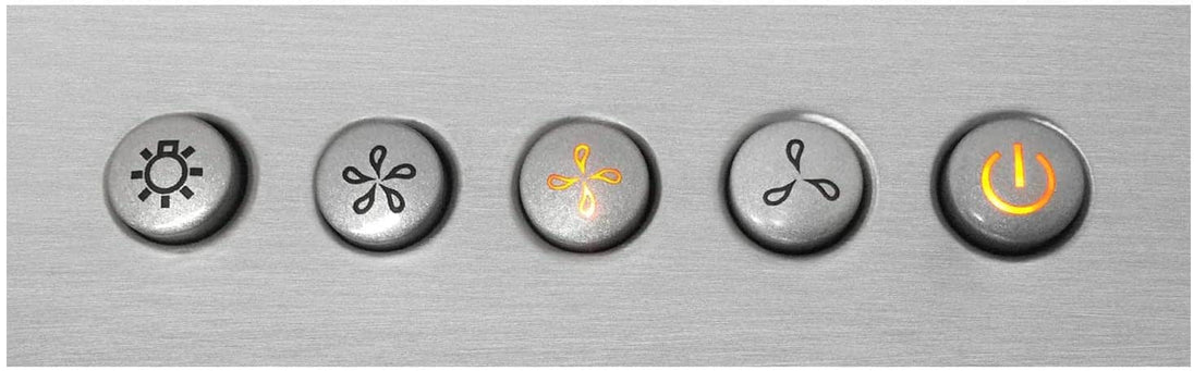 • Push button controls operate the fan and lights in sleek stainless steel that integrates seamlessly with the wall mount range hood design