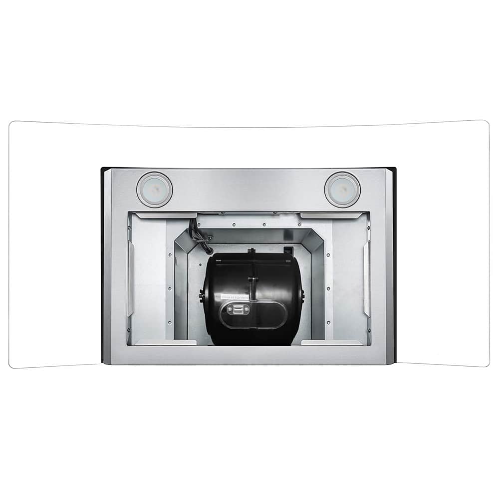 - Energy efficient 2-Watt LED lights helps illuminate your cooktop surface for added visibility, mounted directly below the wall mount range hood, cook and see better in the dark