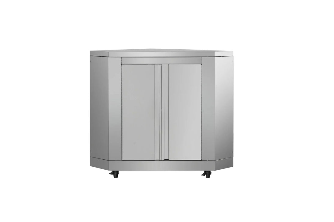 - Corner Cabinet Module - This is the corner piece you need to make an L-shape so your outdoor modular kitchen suite will fit on your patio
