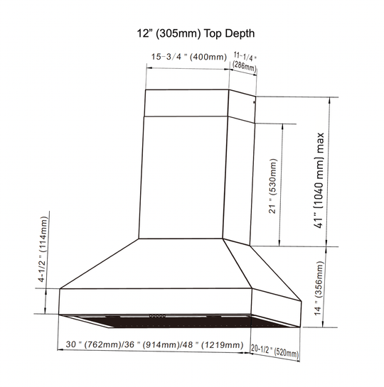 Thor Kitchen 36” Professional Wall Mount Pyramid Range Hood with 800 CFM Motor in Stainless Steel (TRH36P)