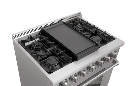 Thor Kitchen 36-Inch Natural Gas Range with 6.0 Cu. Ft. Self-Cleaning Oven, Air Fryer, Tilt Panel in Stainless Steel (TRG3601)