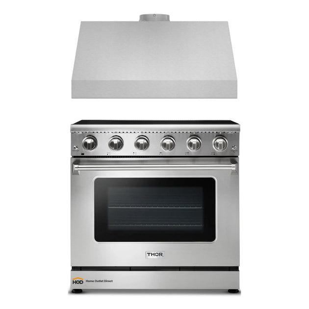 Thor Kitchen 2-Piece Appliance Package - 36-Inch Electric Range and Under Cabinet Hood in Stainless Steel