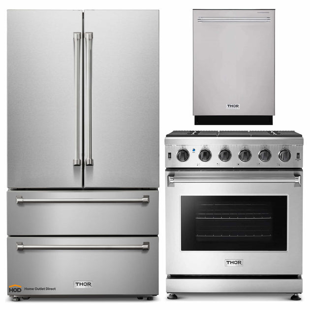 Thor Kitchen 3-Piece Appliance Package - 30-Inch Gas Range, Dishwasher & Refrigerator in Stainless Steel