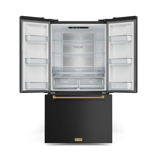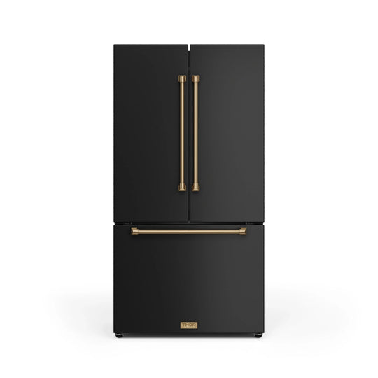 Gordon Ramsay by Thor Kitchen 36-Inch 20.3 cu ft French Door Counter Depth Refrigerator with Ice Maker in Black with Bronze Trim (RF3621CTD00-BRZ)