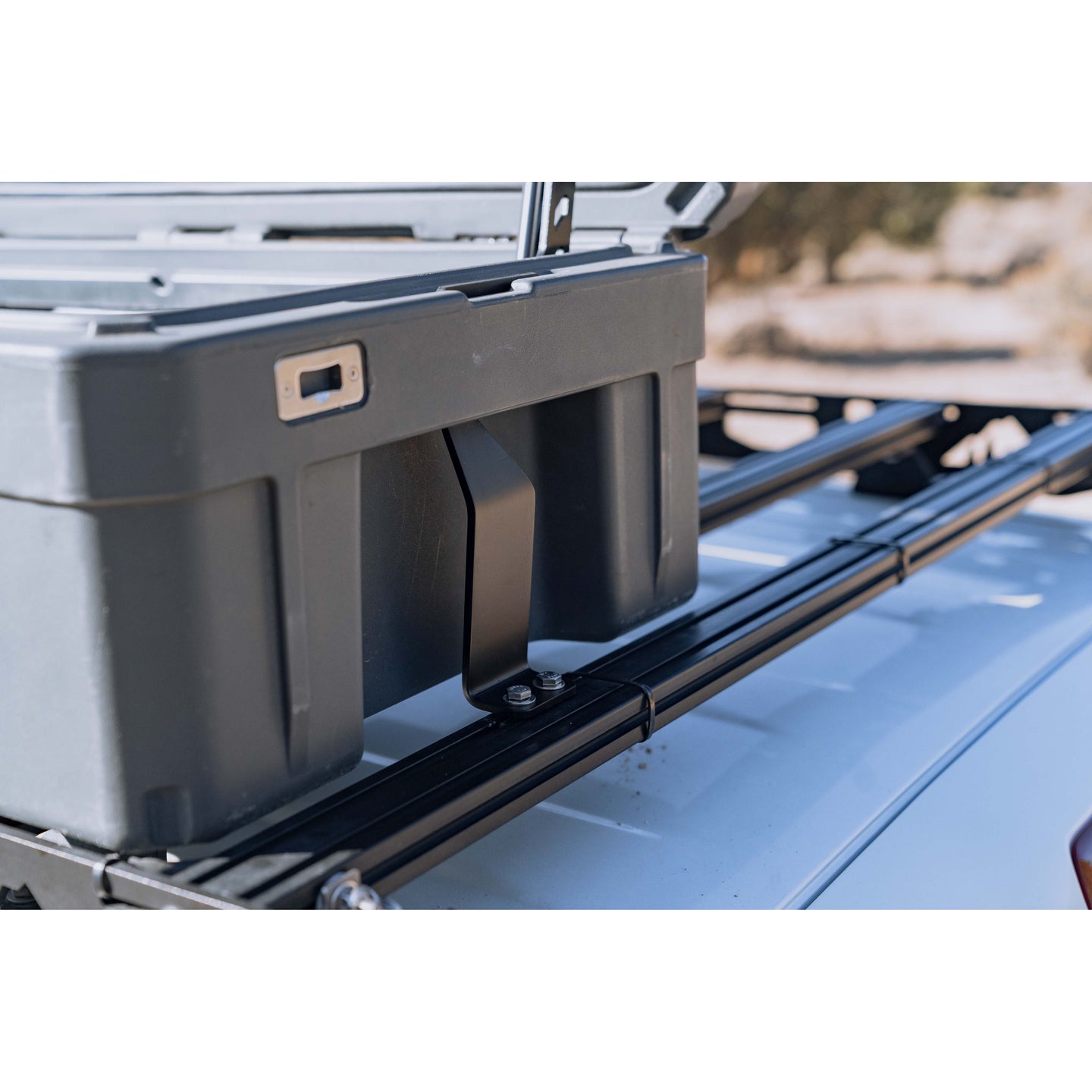 The 128L Rigid Mount is a hard-mounted system designed to be able to mount a 128L Rugged Case to your roof rack or anything with mounting capability. Its design allows the mount to shoehorn into the tie-down channels of the 128L Rugged Case and has 1/4" holes to bolt down to your rack or flat surface. The mounts are .188 black powder-coated steel.